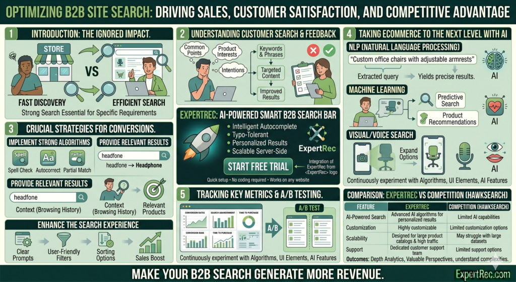 As a B2B ecommerce entrepreneur, you’re constantly looking for ways to drive more sales, achieve customer satisfaction, and stay ahead of the competition. One commonly ignored aspect of your online store’s success is site search functionality. An optimized site search can be innovative, helping your customers find what they need quickly and efficiently.