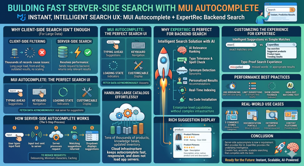 In this article, we will explain how server-side search utilizes MUI Autocomplete, along with how a business can configure their server-side search to work specifically with ExpertRec’s intelligent search platform.