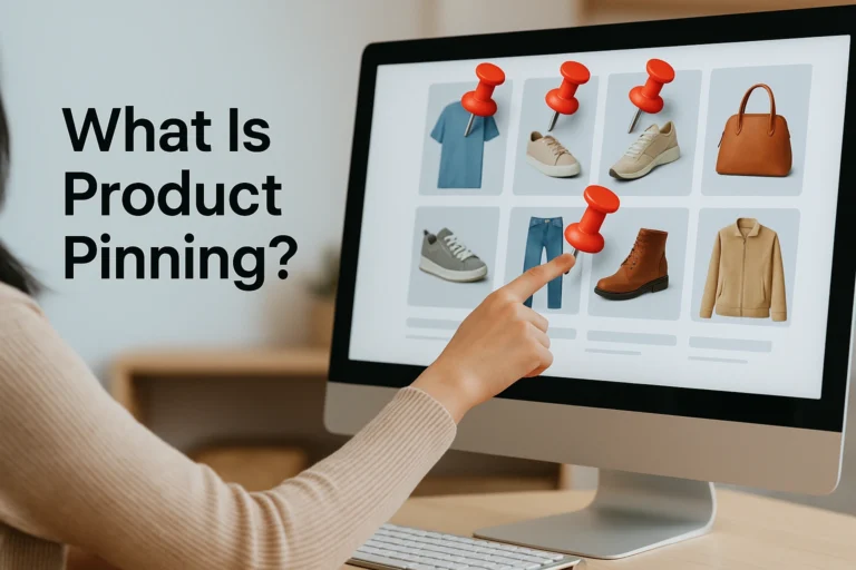 In ecommerce merchandising, product pinning means fixing certain items at key positions — like the top of search results or a prime slot on category pages.